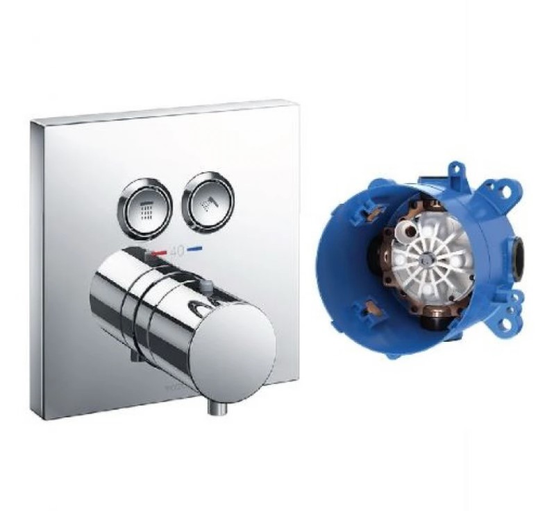 Van điều chỉnh nhiệt độ (2 đường nước ra) kèm van chuyển hướng (loại nút nhấn) và phụ kiện âm tường